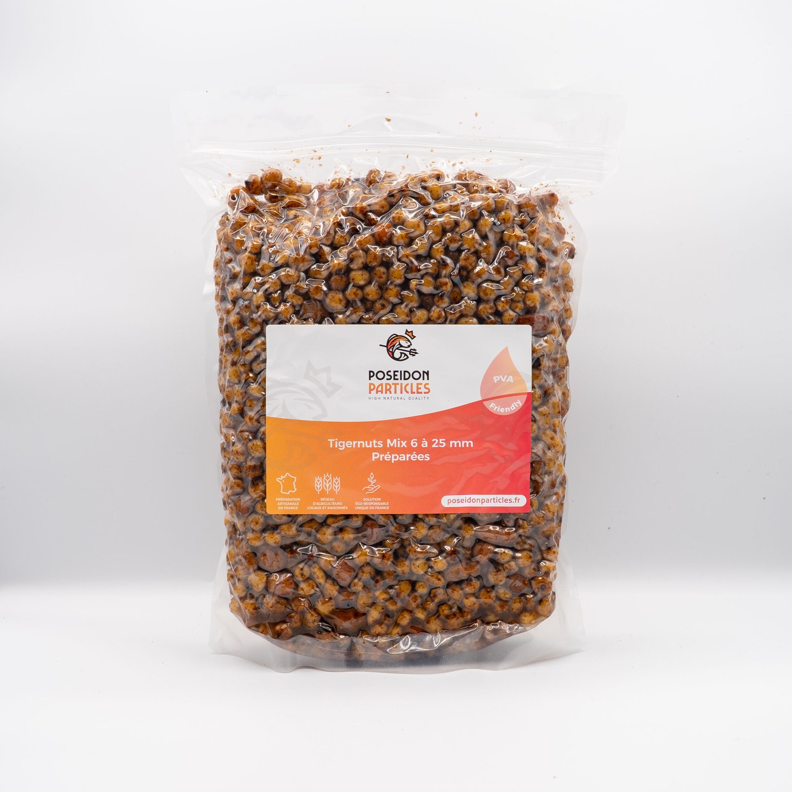 La Tigernuts Mix préparée est l’un des appâts incontournables pour les passionnés de pêche à la carpe. Composé d’un mélange de noix tigrées de tailles comprises entre 6 et 25 mm, ce format varié assure une diffusion progressive et un travail attractif optimal, capable de tromper même les poissons les plus prudents.